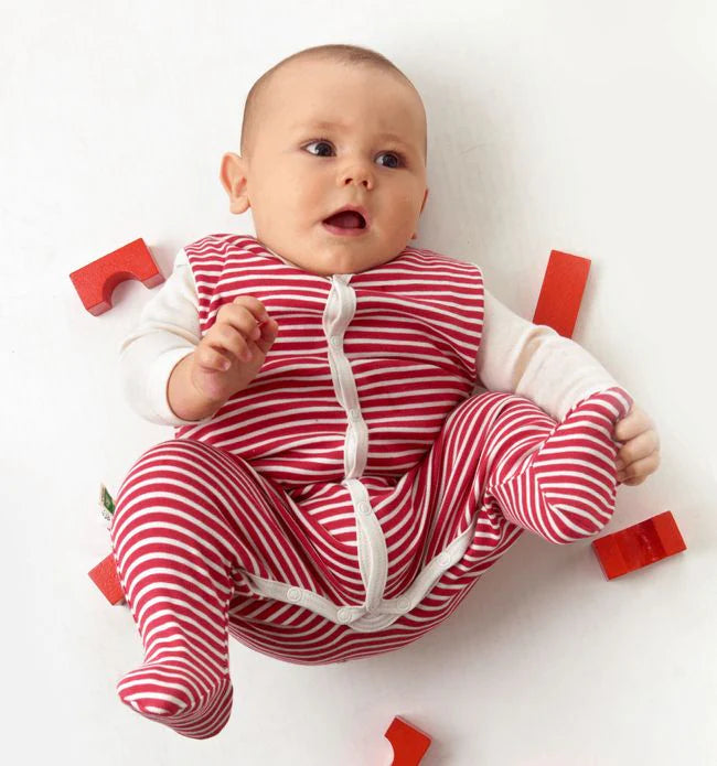 100% Organic Cotton Baby Romper Red Stripes - Made in Germany